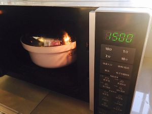 10分钟后取出来,倒掉大部分盘里的水,加入剁椒,加入适量油、香油也可以