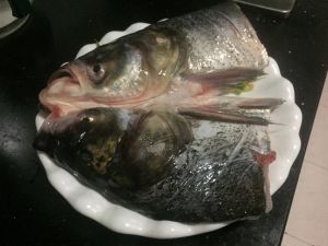 鱼头冲洗干净,放入蒸笼中蒸八分钟后取出