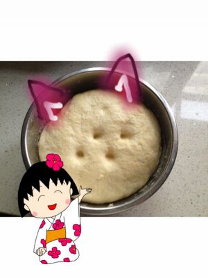 盖上盖子发酵半个小时,手上沾一些干面粉在面团中间按个窝,留意一下,如果按下去回弹说明还得还没完全发酵好,再等等。如果按下去不动说明发酵完成,如果按下去塌陷了有股扑鼻的酸味说明发酵过头了。
