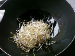 放入米面,大火炒一分钟,加入酱油,盐,香油