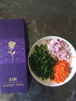 先把洋葱切成粒,胡萝卜洋葱也切成粒,白包菜切成丝干辣椒切成节,锅内加水放入少量盐烧开后放入干面烧开至六七成熟后立即捞出用凉水冲凉;
