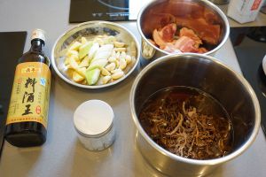 加入料酒300ml(代替水,如果不喜欢也可料酒水1:1,花雕酒口味更佳),生抽50ml,小火慢煮