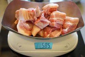 五花肉切块,根据个人喜好大小随意。差不多3~5厘米就可以