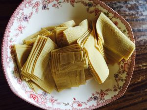五花肉切块,用棉绳十字结系好