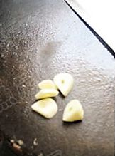 热锅下油,油热后倒入蒜头片、八角、茴香、桂皮、香叶,中小火煸香。