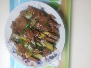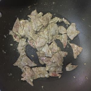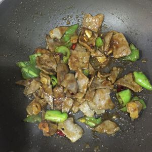 下猪肝 酱油蚝油调味翻炒均匀