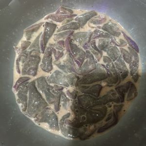 倒入调好的料汁,所有食材翻炒均匀