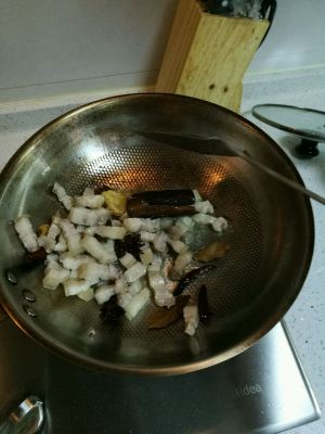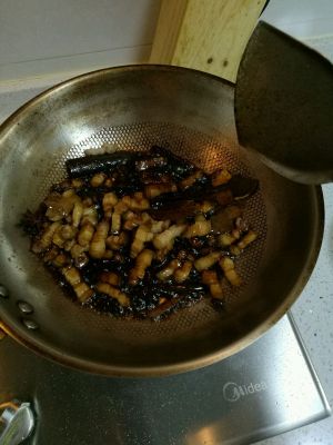 将稍微肥一点的肉放入锅中煸炒出荤油