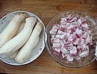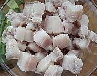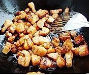 热锅放少量油,待油热后,放入切好的五花肉,翻炒,炼出五花肉多余的油之后,五花肉呈棕黄色,捞出滤油
