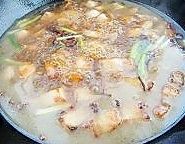 倒入足够的开水、生抽、老抽、葱段、姜片、大料,桂皮、香叶、花椒。大火烧开后转小火炖约1小时。