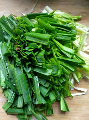 青红椒切成片儿,青蒜苗洗好切段儿备用。
