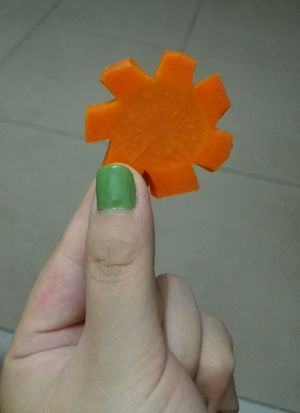 把所有菜剁剁剁切切切成丁,虽然很费时,但是做好之后每样菜都很入味。留大概三分之一的胡萝卜改花刀(我就是把边隔一段切一个小三角,怎样切随意,然后抄水备用)。