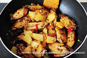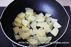 加入少许糖,然后放入土豆片不断翻炒均匀;
