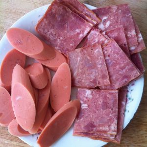 培根是在超市买的雨润的,我切了三段,喜欢火腿肠的提前切片,也可以放其他肉类。