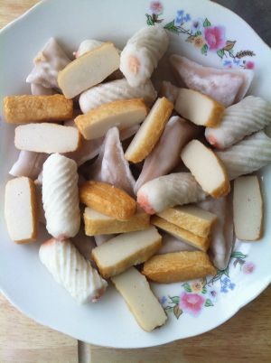在超市买的三全鱼豆腐类,拼了一盘。各类菜菜焯好后,最后在煮一下鱼丸类,易熟易入味。
