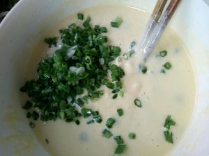 搅拌好之后加葱和盐,可以加点香油 由自己