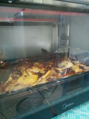 3.腌制后放入铺好锡纸的烤盘中,210度左右烤20分钟