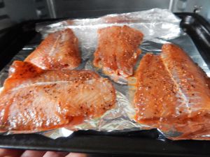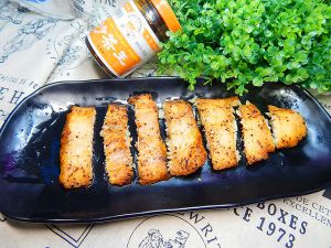 拌好的香料均匀的撒在鱼身上,烤箱上下管200度预热5分钟,然后将烤盘放入烤箱,上下温度200度,烤20分钟。
