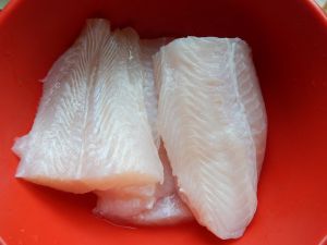 将鲈鱼内脏取出,洗净,鱼肚开花刀对半切开,是整个平铺开来,两面抹上盐;