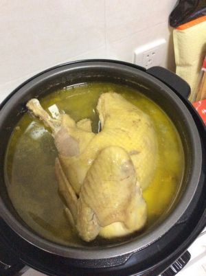 把鸡肉洗净,加入水加入生姜大蒜和料酒,煮15分钟至熟透