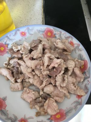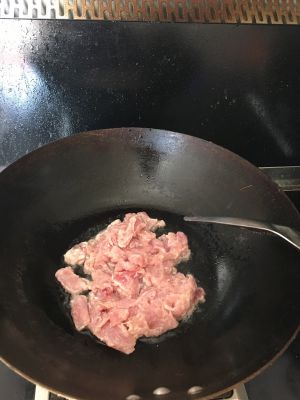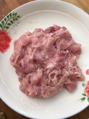 肉会粘锅,所以翻炒要快,炒熟盛出盘中