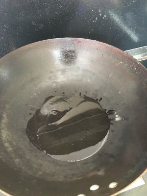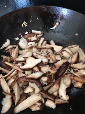 锅中放水和油,大火烧开后加入香菇,改中小火煮熟