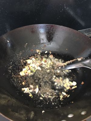 锅里倒入适量油,烧热放入姜蒜花椒,