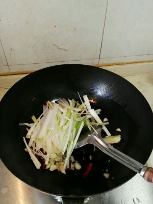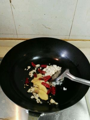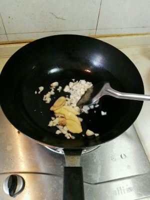 小火热锅,放油,等油五成热的时候放蒜粒,煸炒出蒜味之后放姜片