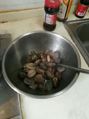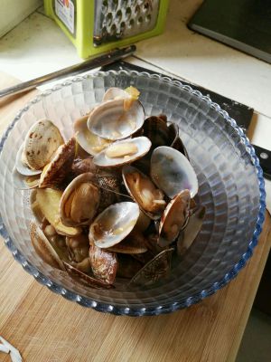 烧一锅水,水开后放入花蛤,大火焯2分钟,这个火候很重要,千万别焯老了,花蛤微微张口就关火。