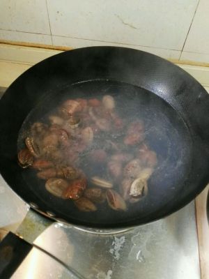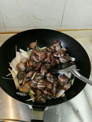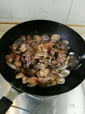放调味汁翻炒,花蛤张嘴之后再炒一分钟就可以关火了