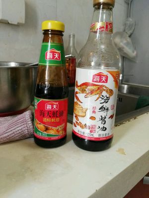 准备调料汁,两勺酱油,一勺蚝油,一勺白糖 ,用小碗调成汁