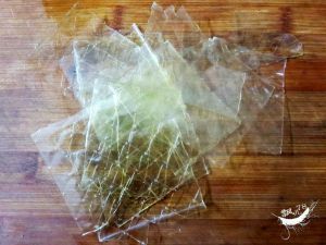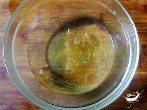 琼脂洗净,凉水泡软,用50ml水小火煮化