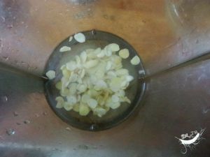 杏仁清洗几次后倒进料理机里倒入清水200g打成汁