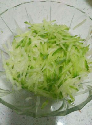 萝卜擦丝,尽量擦短些,如果太长了,最好再切一切