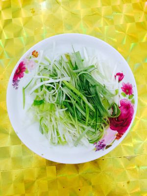 大葱切丝码入盘中