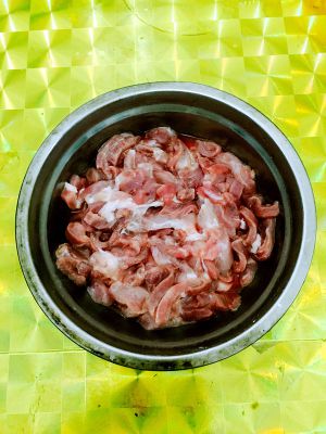瘦肉切丝,放入一勺盐,少许味精,少许淀粉搅拌均匀,腌十分钟