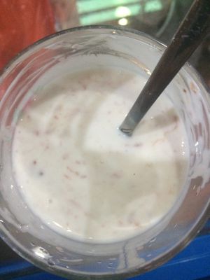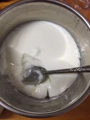 再加入纯牛奶,搅拌匀就可以了。酸奶我试过卡士和燕塘的,本人觉得卡士的做出来口感好点。纯奶是在吉之岛买的进口牛奶。