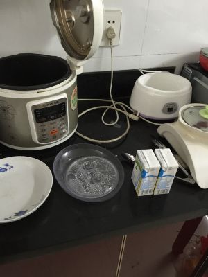 我是用酸奶机做的,洗干净后,装酸奶的盒子和搅拌的羹都用煮沸的热水泡一到2分钟,可以杀菌。泡完后热水用碗装起留一点放酸奶机里面用的。然后加入酸奶一盒。