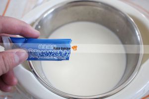 加入儿童菌粉 tips:牛奶的温度在40度以下,30度以上,利于乳酸菌生长。对于儿童菌粉的存放,要放在冰箱冷冻保存