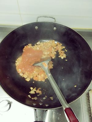 翻炒均匀后加入番茄酱