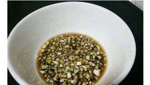 制作蒜汁,蒜切成蒜末,加入生抽和米醋调匀!