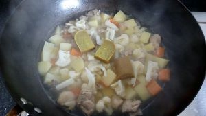 煮10分钟左右加入咖喱块或咖喱粉盐'勾芡