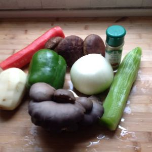 鸡脯肉'莴笋'香菇'蘑菇'洋葱'辣椒'土豆'胡罗卜