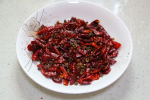 准备好花椒和干红辣椒来炒红油,喜欢吃辣的可以选辣一点的,不能吃辣的可以选专门炒红油的辣椒,味道不怎么辣
