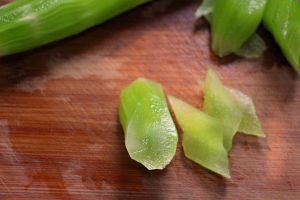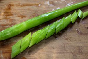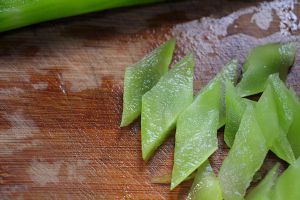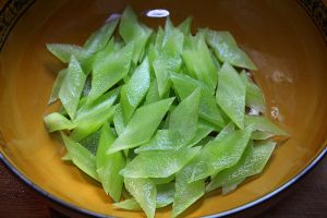 切下去就成了菱形,这样的刀法平时烧根茎类蔬菜都可以用到,简单的一盘菜立马有颜值了