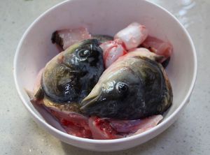 草鱼去头,切两半,片去鱼骨,鱼肉切成薄片,这个过程太血腥,不放图,可以在买鱼的时候让商家帮忙切好,鱼头,鱼骨用料酒和少许盐腌制入味