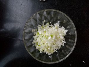 取适量小葱,洗净切成葱花,加入适量食盐搅拌均匀备用。