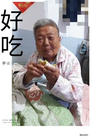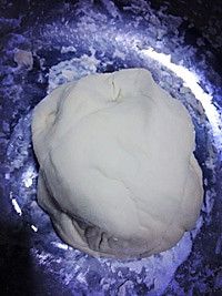 温水里倒入面粉,活成光滑面团。盖上保鲜膜待用。(不好意思,做了一半才有时间拍照,用奶奶吃饼的照片代替了)