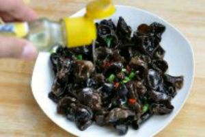 适量的盐、糖、醋、老抽、鲜酱油、麻油调成汁,加入椒、葱、蒜一起倒入黑木耳里,最后锅入油烧热。倒入黑木耳里。搅拌均匀。即可!