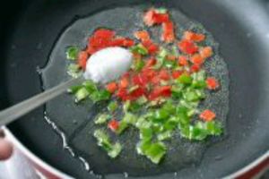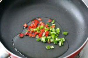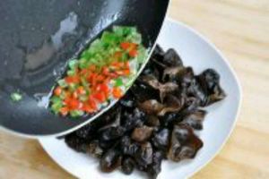 黑木耳泡软后下锅煮熟,过冰水备用,放入青椒丝、红椒丝。